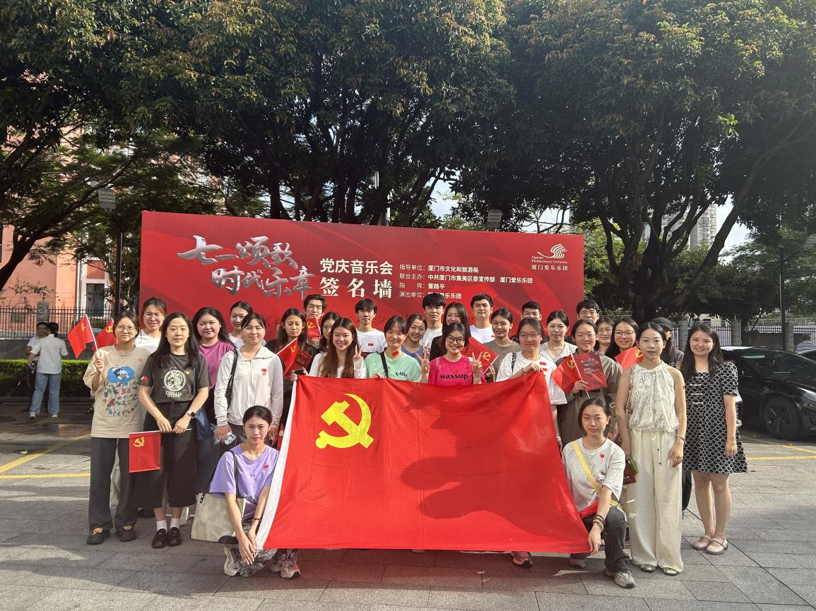 为庆祝中国共产党成立103周年,近日,我院学生第一、第二党支部前往思明区群众艺术活动中心开展主题党日活动,聆听由厦门市文化和旅游局指导,中共厦门市集美区委宣传部、厦门爱乐乐团联合主办的七一颂歌·时代乐章党庆音乐会。