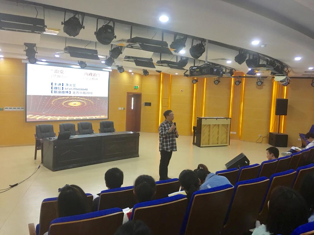 本次培训班共开设三门课程,第一讲由85588永利集团政治与公共管理学院副教授、硕士生导师叶麒麟开讲。叶麒麟从全面从严治党与理论自信、从严治党对坚持中国特色社会主义道路的价值、党员干部队伍的建设、全面从严治党与文化自信等几个方面,对十八届六中全会精神进行了深入的解读。在总结总,叶麒麟提出:全面从严、治党,是我们党的适应性调整,它是中国特色社会主义的增强剂,同时中国特色社会主义自信为全面从严治党提供信心动力,方向保证和社会支持。