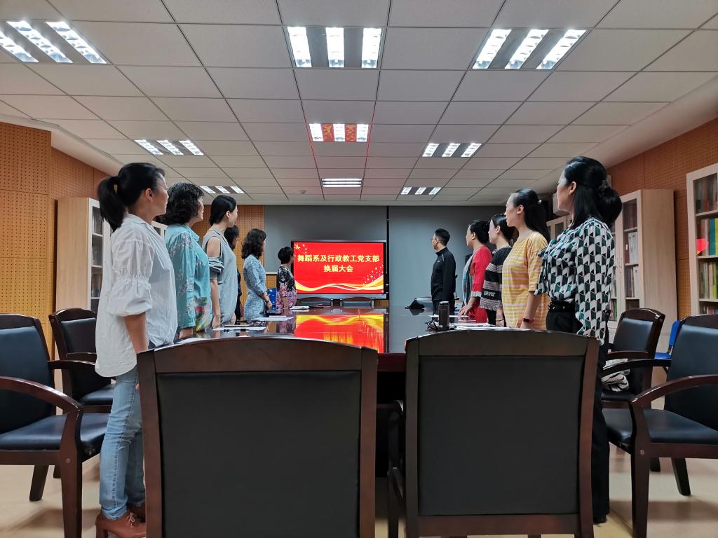 2020年11月19日上午,在庄严的《国歌》声中,舞蹈系及行政教工党支部换届选举大会在音舞大楼210室召开。舞蹈系及行政教工党支部全体党员参加了会议。