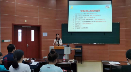 在“学习学校党政工作要点”这一专题中,侯艳茹以“一图”梳理今年党政工作,要求学院班子成员和全体教职工提高政治站位,切实把思想和行动统一到习近平总书记重要指示批示精神上来,从学院专业特点出发,结合教育教学改革,着力提升人才培养质量,为海外统战工作担起职责使命。
