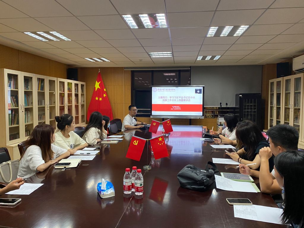 9月14日下午,学生第一、第二支部联合举办主题党日活动,进一步传达党建工作计划安排,并共同学习习近平总书记在中央民族工作会议上的重要讲话《以铸牢中华民族共同体意识为主线 推动新时代党的民族工作高质量发展》。党委组织员葛卫遥传达了学院党委对学生各支部下半年的党建工作提出的具体要求,并对近期支部立项、“喜迎二十大”支部活动等做进一步解读、强调,希望学生各支部发挥专业特色,举办贴近学院和学生实际的支部活动,喜迎党的二十大。