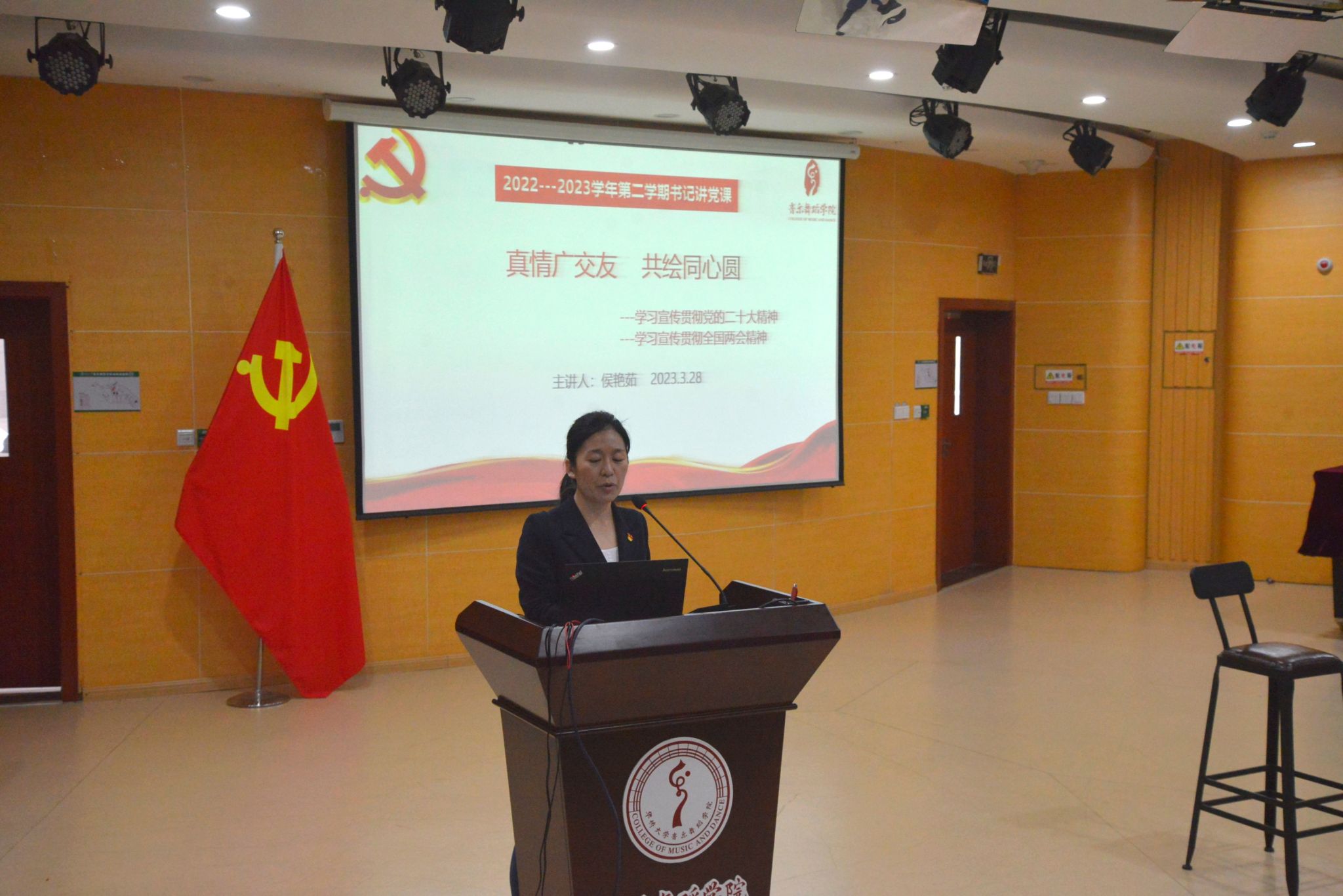 3月28日下午,yl88858永利集团党委在音舞楼216多功能厅举办“党委书记讲党课”活动,学院党委书记侯艳茹结合党的二十大精神和2023年全国“两会”精神,以铸牢中华民族共同体意识为主线,以《真情广交友 共绘同心圆》为题,为学院全体师生党员讲党课。