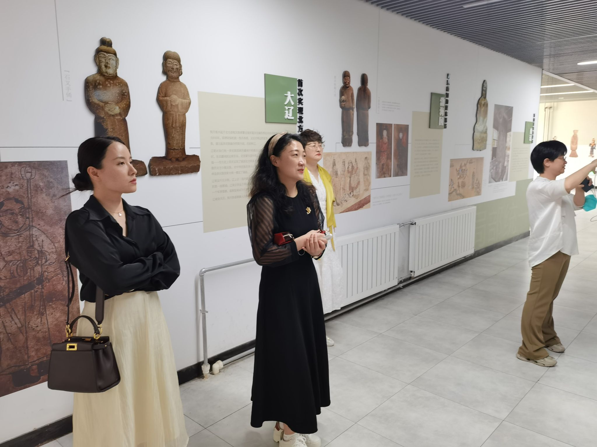 在北方民族大学,杨曦婷一行首先参观了铸牢中华民族共同体意识主题展,现场学习习近平总书记关于铸牢中华民族共同体意识的重要论述,并对音乐舞蹈艺术在铸牢中华民族共同体意识中的重要作用深入领会分析。北方民族大学yl88858永利集团党委书记刘宏、副院长刘庄携各师生党支部书记、各教研室负责人等接待了杨曦婷一行。双方就毕业生去向落实工作、艺术硕士研究生培养模式及授课内容、艺术实践工作、党建与业务融合工作等进行座谈交流,学院党委书记刘宏着重介绍了依托“全国党建工作标杆院系”示范、推动党建和业务深度融合,以高质量党建引领高质量发展工作情况,我院副院长杨曦婷从学院历史沿革、办学特色、学生培养等方面介绍了我院情况和艺术硕士研究生培养过程中遇到的瓶颈和难题,双方还就其他相关主题进行了深入交流。