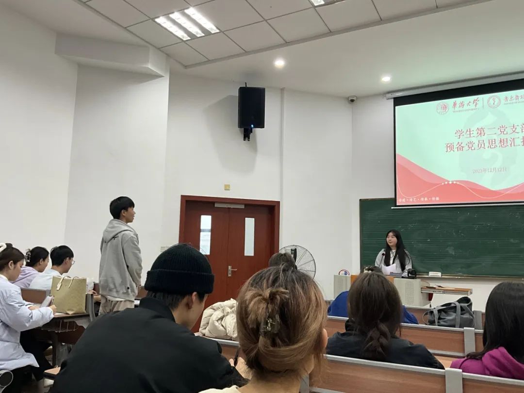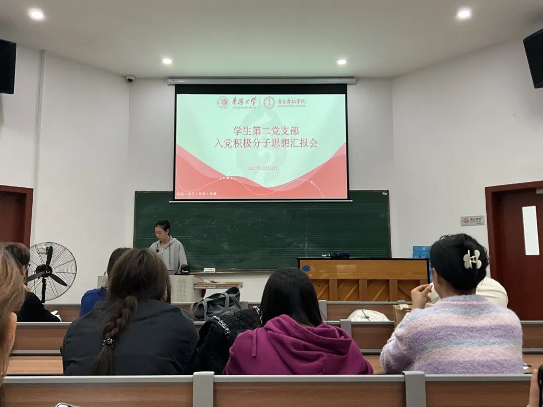 第二党支部书记葛卫遥老师表示,思想汇报会的目的在于对照标准、自我检视、自我提高,作为积极分子和党员,任何时候都要牢记“为人民服务的”的宗旨,时刻以党员标准来要求自己,努力在学习、工作和社会生活的各个方面发挥先锋模范作用。