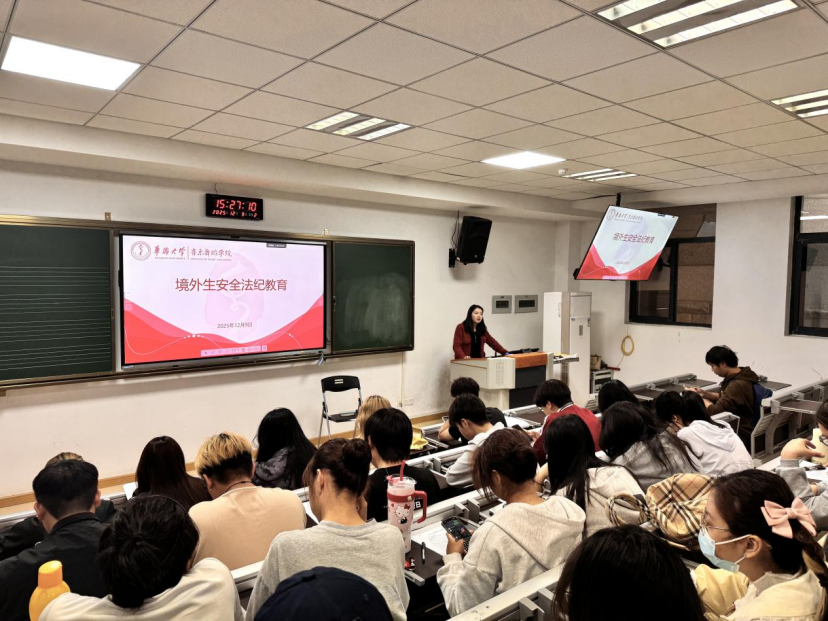 为切实增强境外学生的法律意识、纪律观念与安全防护能力,2025年12月9日,我院在李碧葱音乐舞蹈大楼B04教室召开境外生法纪安全教育大会。全体在校境外学生参加会议,大会由李雅琳老师主讲。