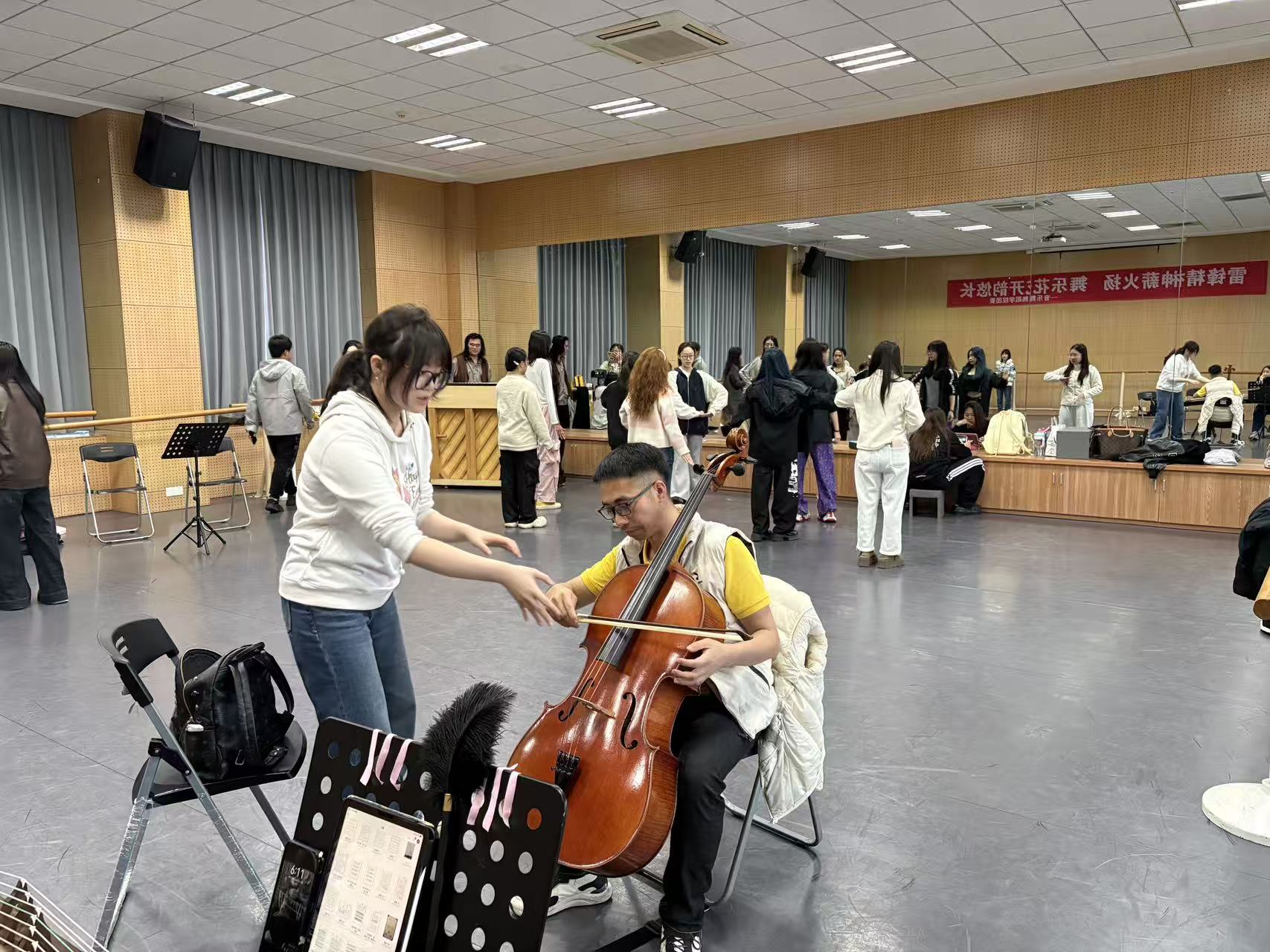 活动依托学院专业优势,分设舞蹈、乐器、声乐三大组别,由“舞乐花开”服务队的志愿者担任小老师,针对零基础学员设计趣味性、互动性强的教学内容。舞蹈组中,志愿者细致分解古典舞的柔美身韵与现代舞的灵动步伐;乐器组内,吉他、古筝、小提琴等乐器的基础指法在耐心指导下变得触手可及;声乐组则通过呼吸训练与旋律跟唱,让学员勇敢放声。现场气氛热烈,志愿者们“一对一”示范、“手把手”纠错,在轻松互动中消弭艺术距离感。