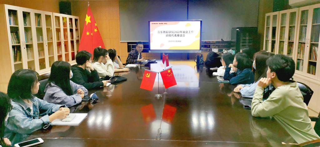 11月30日下午,学院在音舞蹈楼210会议室召开2022届毕业生工作班级代表座谈会,学院团委书记葛卫遥、辅导员乔天锐,2018级各班级学生代表参加。