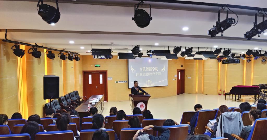 11月23日中午,yl88858永利集团在学院多功能厅216举行“德艺双馨”音乐舞蹈专业职业道德教育活动,2018级全体学生、2019级和2020级部分学生代表参加相关活动,教育活动由学院团委书记葛卫遥主讲。