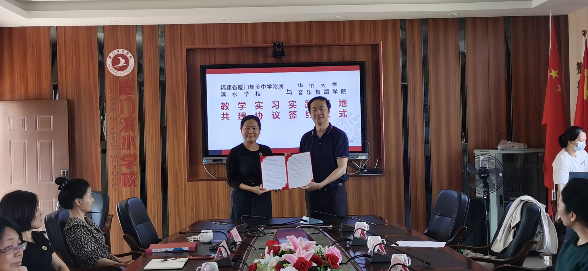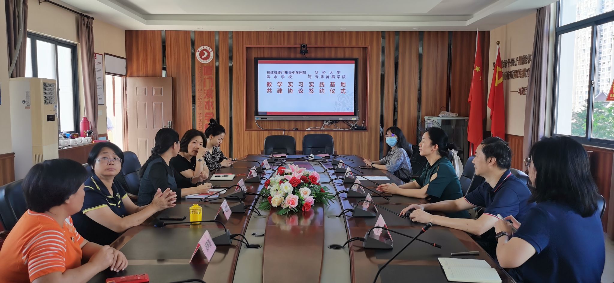 10月17日,学院党委书记侯艳茹、副院长余幸平、理论教研室刘悦老师一行前往集美中学附属滨水学校与学校相关负责人座谈并签署“教学实习实践基地”共建协议书。