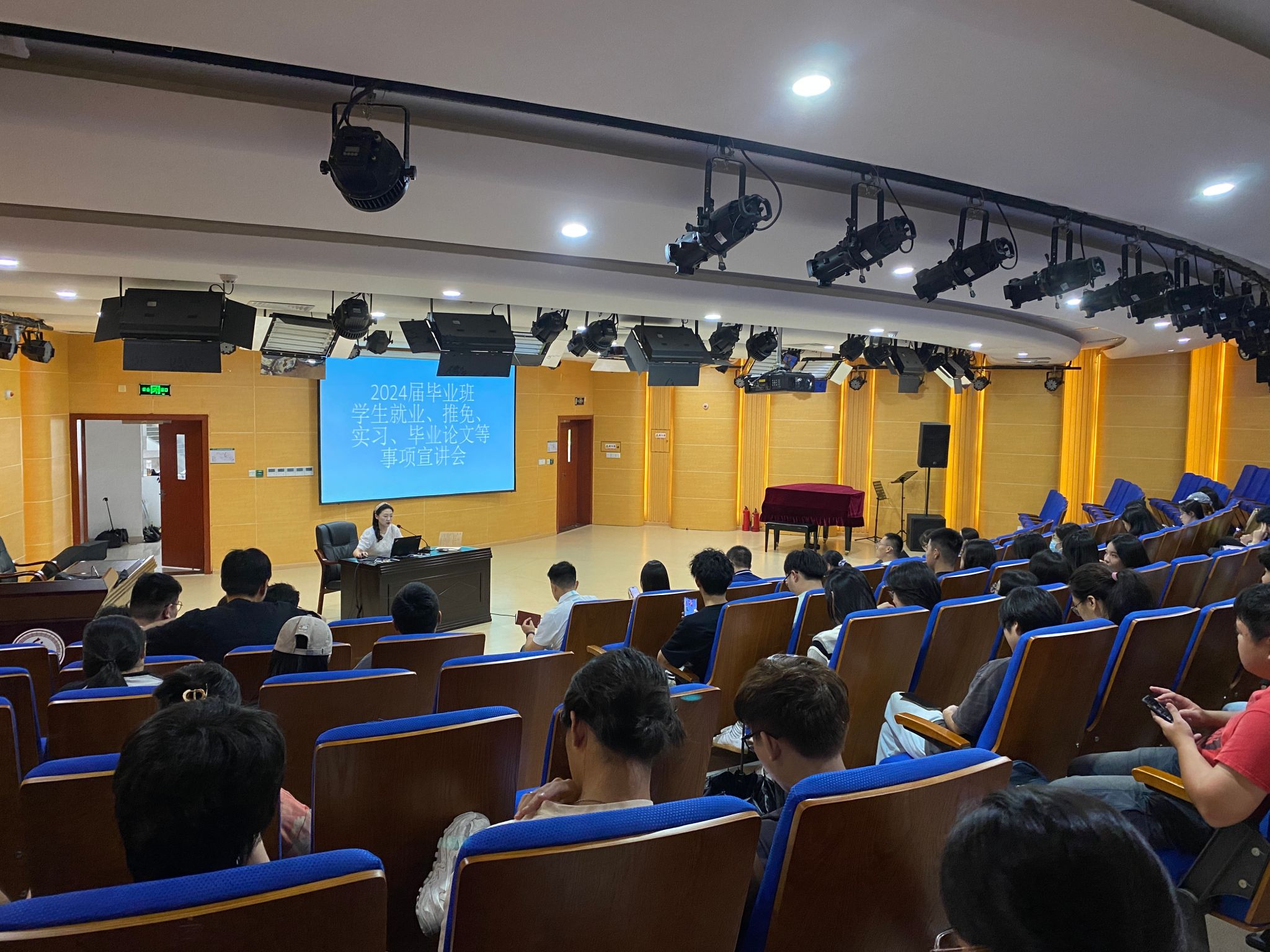 9月4日中午,我院2024届毕业生实习暨就业动员大会在音舞楼216多功能厅召开,2024届全体毕业生、毕业班辅导员和班主任、学院负责实习和毕业论文的老师等参加会议,副院长杨曦婷出席并主持大会。