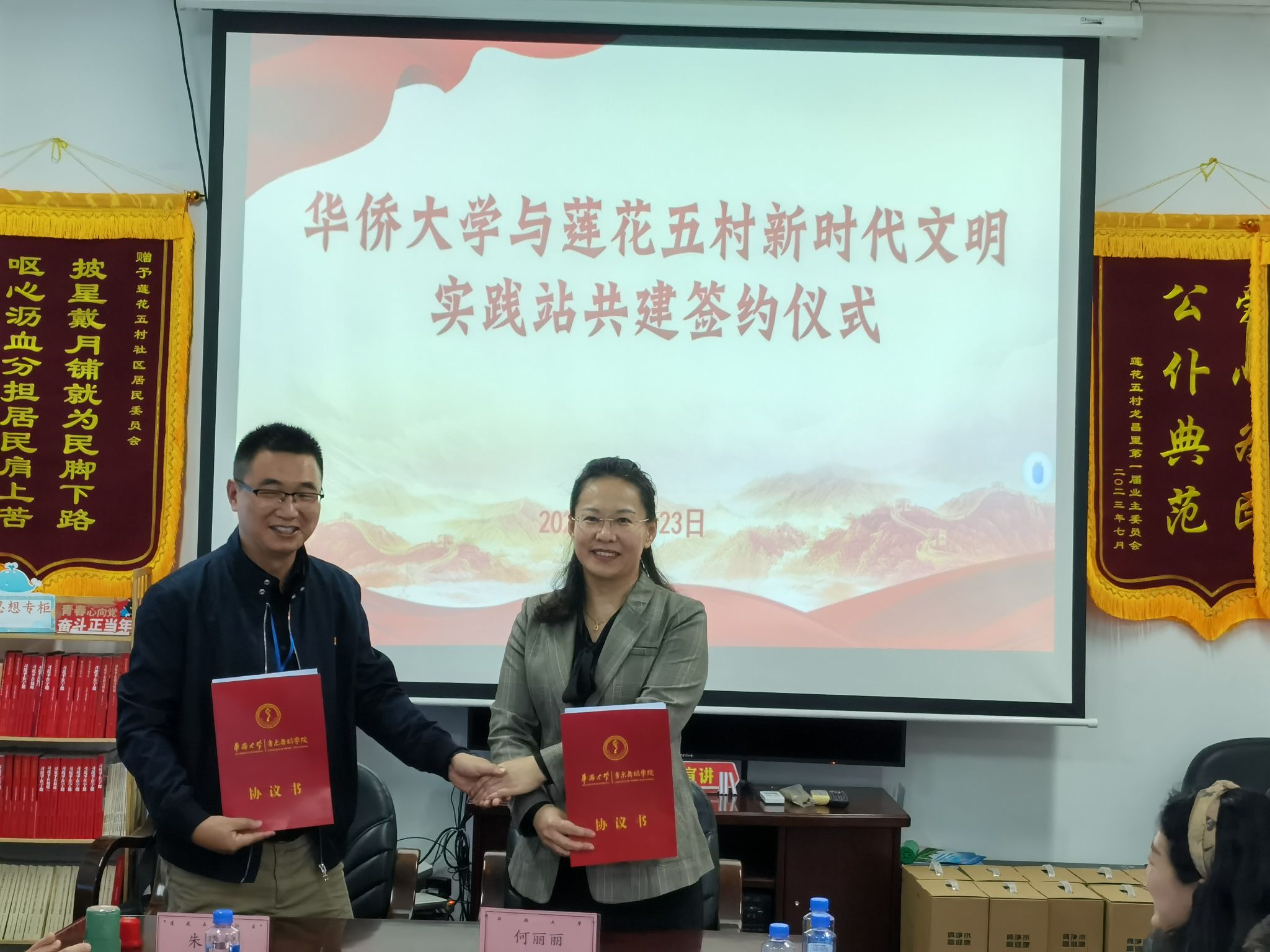 11月23日下午,我院院长何丽丽、副院长杨曦婷、团委书记葛卫遥共赴厦门市思明区莲花五村社区签署新时代文明实践站共建协议。厦门市思明区区委统战部副部长陈青梅代表莲花五村社区签署协议,嘉莲街道党工委委员、三级调研员周光武出席会议,签署会由嘉莲街道莲花五村社区党委书记朱晓铭主持。