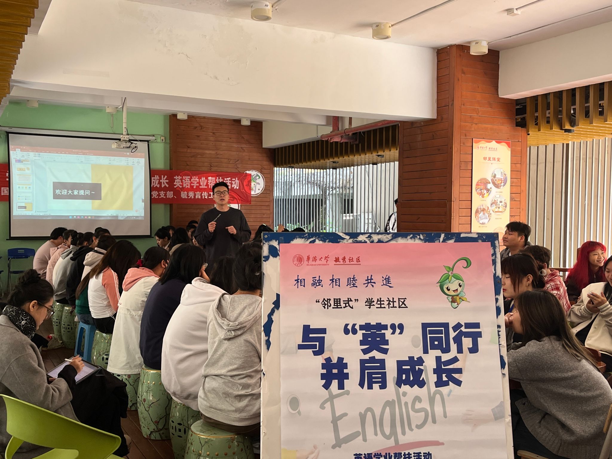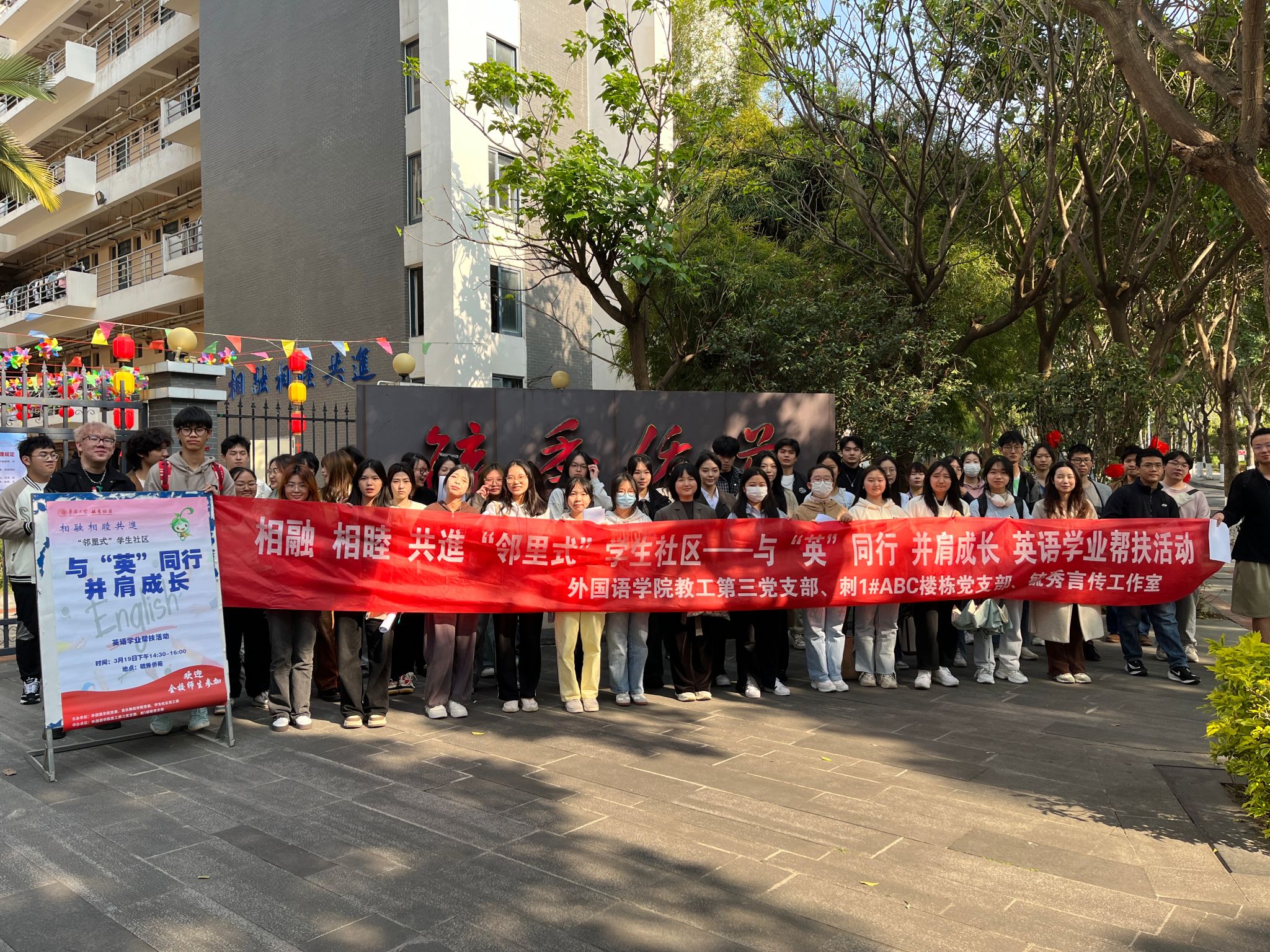 为更好提高我院同学的英语学业水平,帮助其了解英语学习与考试的技巧,增强同学们对于英语学习的动力和信心,促进共同学习,共同进步。3月19日下午,我院与外语学院在学生社区侨苑,顺利开启了以与“英”同行-并肩成长为主题的英语学业帮扶线下组队活动。