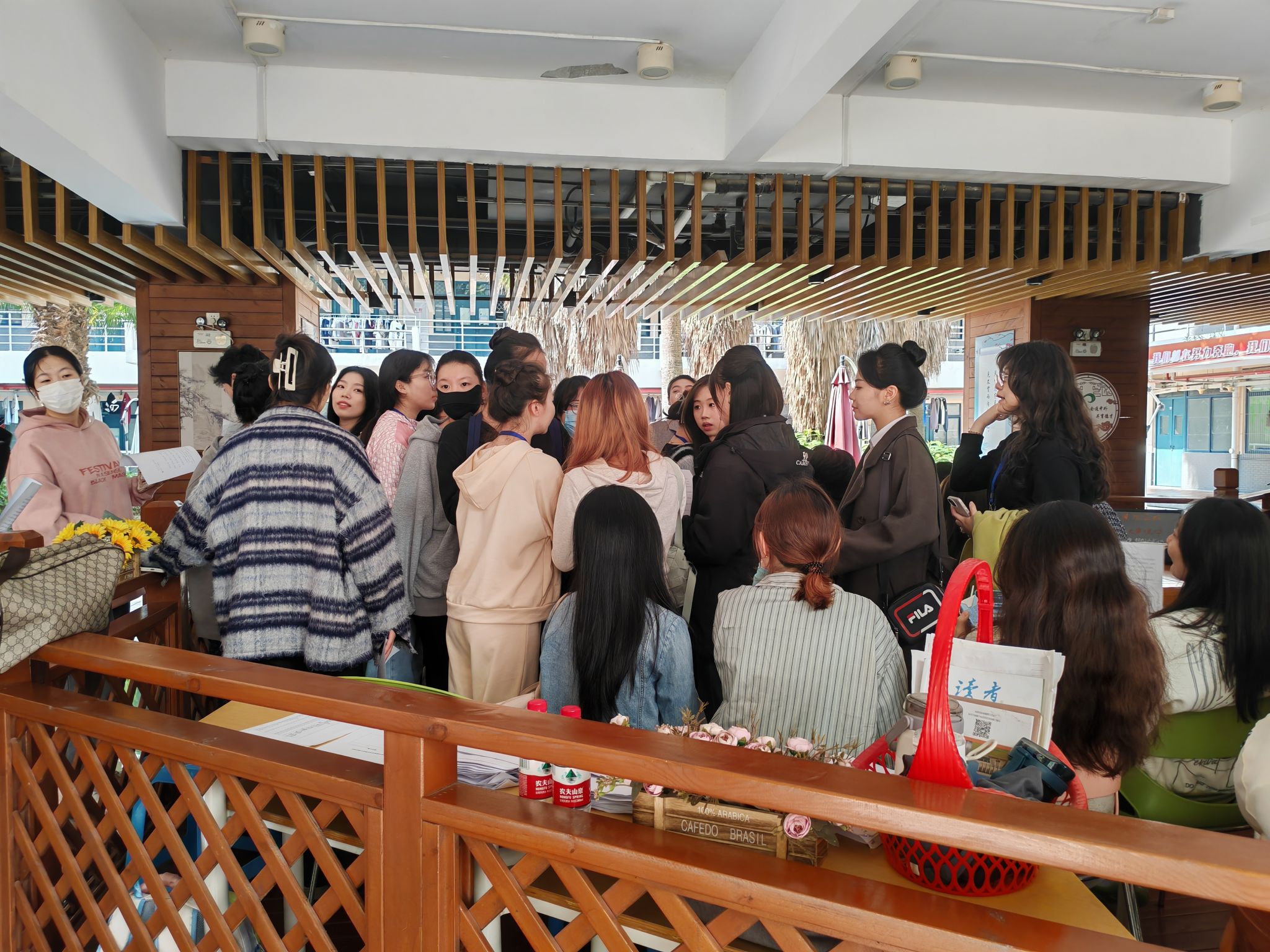 组队活动进行中,两院同学气氛融洽,彼此交流认识,根据各自学习需求,自行组成一对一、一对二或三的学习小组。