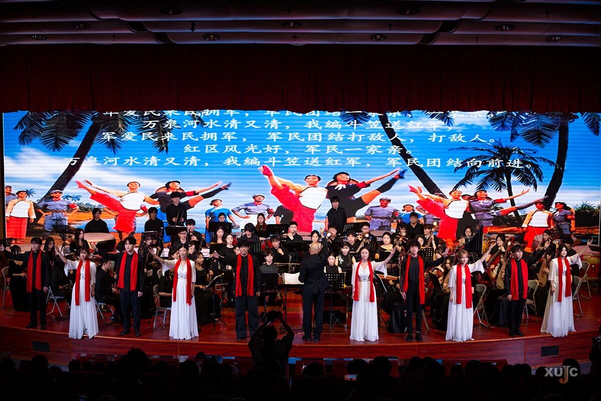 民族管弦乐《望春风》《春江花月夜》将古典意境与现代编曲融合,《龙船调》男女声对唱以活泼互动展现民俗风情;红色娘子军组曲《快乐女战士》《万泉河水》通过小合唱与乐队伴奏,重现红色经典的激昂风貌;女声独唱《九儿》《天路》则以深情演绎传递时代情怀,收尾曲《新龙舞》的磅礴气势将演出推向高潮。返场曲目《北京喜讯》以欢快旋律为整场演出画上圆满句号。