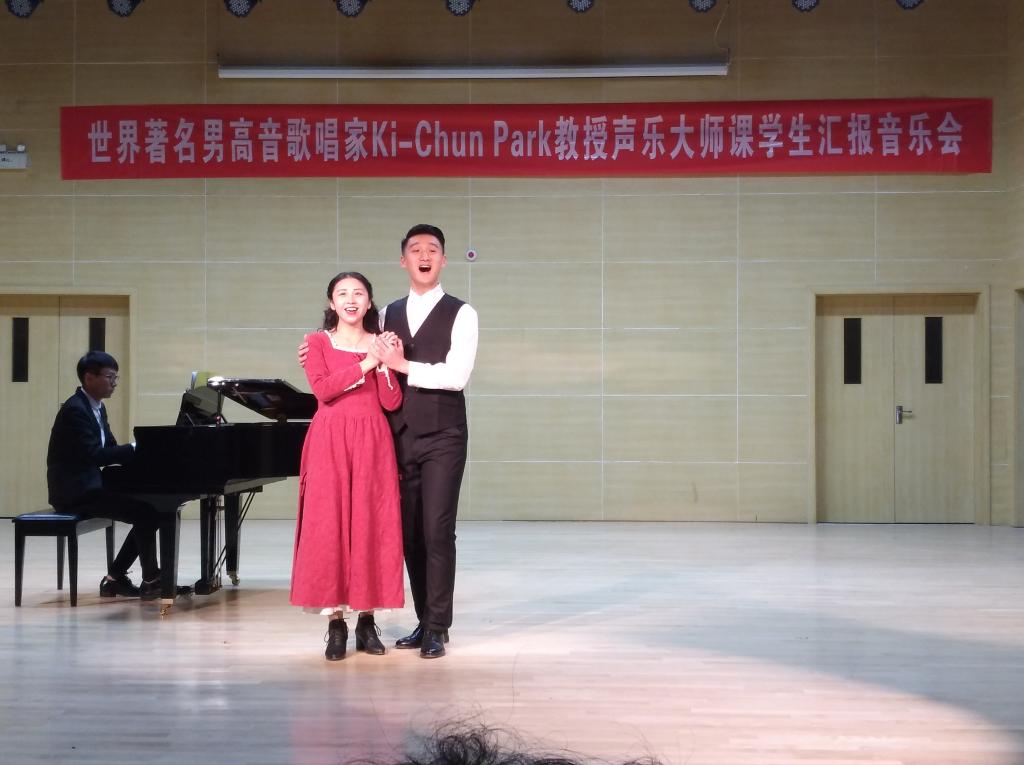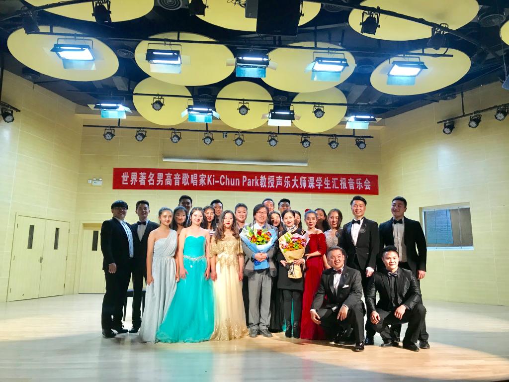 2017年12月20日晚7点30,yl88858永利集团小音乐厅迎来了一场精彩的声乐专场音乐会——《世界著名男高音Ki-Chun Park教授声乐大师班汇报音乐会》。音乐会上学生们一共演唱了24首不同时期不同风格的独唱或重唱声乐作品,这些作品均是在Ki-Chun Park教授的悉心指导下顺利完成的。Ki-Chun Park教授是欧洲多所大歌剧院的首席男高音,也是韩国“三大男高音”之一,有着丰富的歌剧舞台表演经验,在本次应邀为期20天的声乐大师课上,Ki-Chun Park教授用新颖独特的训练方法,风趣幽默的语言进行深入浅出的讲解,使得学生们在音乐表现力、音乐表演及演唱技巧等方面都获得了非常大的进步。汇报音乐会吸引了不少来自厦门大学音乐学院和集美大学音乐学院等兄弟院校的专家教师们,音乐会结束后,来自厦门大学的特聘外专、世界著名男中音歌唱家章亚伦教授对学生们的现场演唱给予了很高的赞誉和期望。汇报音乐会的成功举办也为Ki-Chun Park教授的本次讲学画上了圆满的句号!