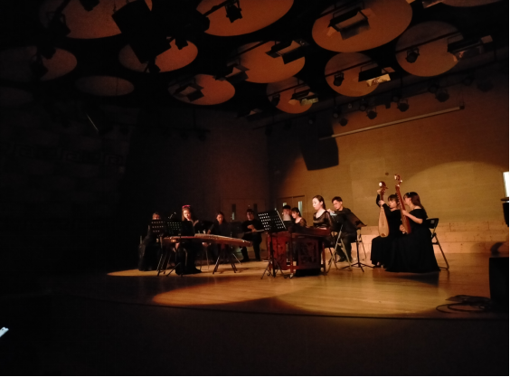 2020年12月11日,李碧葱音乐舞蹈大楼小音乐厅里格外热闹,这场由叶彦老师和殷侃老师指导、由2019级学生自己编排的艺术实践晚会在小音乐厅成功举办。从民乐到西洋乐,从合奏到重唱,2019级音乐班学生向观众展现了他们能歌善弹,可爱活泼的一面。他们无疑是这个冬天热情的一把火!