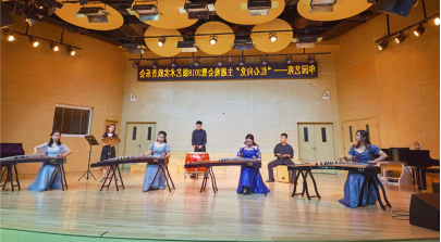 来自2018级音乐班的所有同学参加了演出。筚路蓝缕,砥砺前行。节目在“一条大河波浪宽”这样耳熟能详的旋律——《我的祖国》中拉开了序幕。四手联弹《青春舞曲》展现了民族团结共进的风采。改革开放,赤子之心。由我院2018级全体境外生演唱的《我的中国心》展示了中华民族一家亲的祥和。重唱《春天的故事》,演员动听的声音引出了改革开放的迅速发展和优秀成果的美好画面。