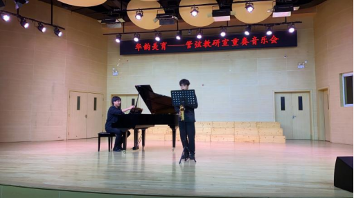 上半场的表演以多首中西合璧的重奏作品拉开了序幕。首先,由鲁兰朵、李钰涵、谢蔓瑶等人精心演绎的古筝重奏《翡翠》,将西南少数民族音乐的元素融入其中,展现出西南民族风情的美丽画卷。接下来,赖思成、卜昭淦带来的萨克斯钢琴重奏《Lunde Sonata I II》,优美而宁静的氛围令人陶醉。黄晓晴、董琳、孟子其等人带来的扬琴重奏《瑶族舞曲》,以其欢快的旋律和活力四溢的节奏展现瑶族文化的魅力。刘子琦、林静怡、李佳威等人带来的民乐重奏《跑旱船》,将民间舞曲的欢乐与趣味完美展现。最后,陆洋、周浩天带来的大提琴钢琴重奏《采茶谣》,将大自然的神奇和宁静娓娓道来。