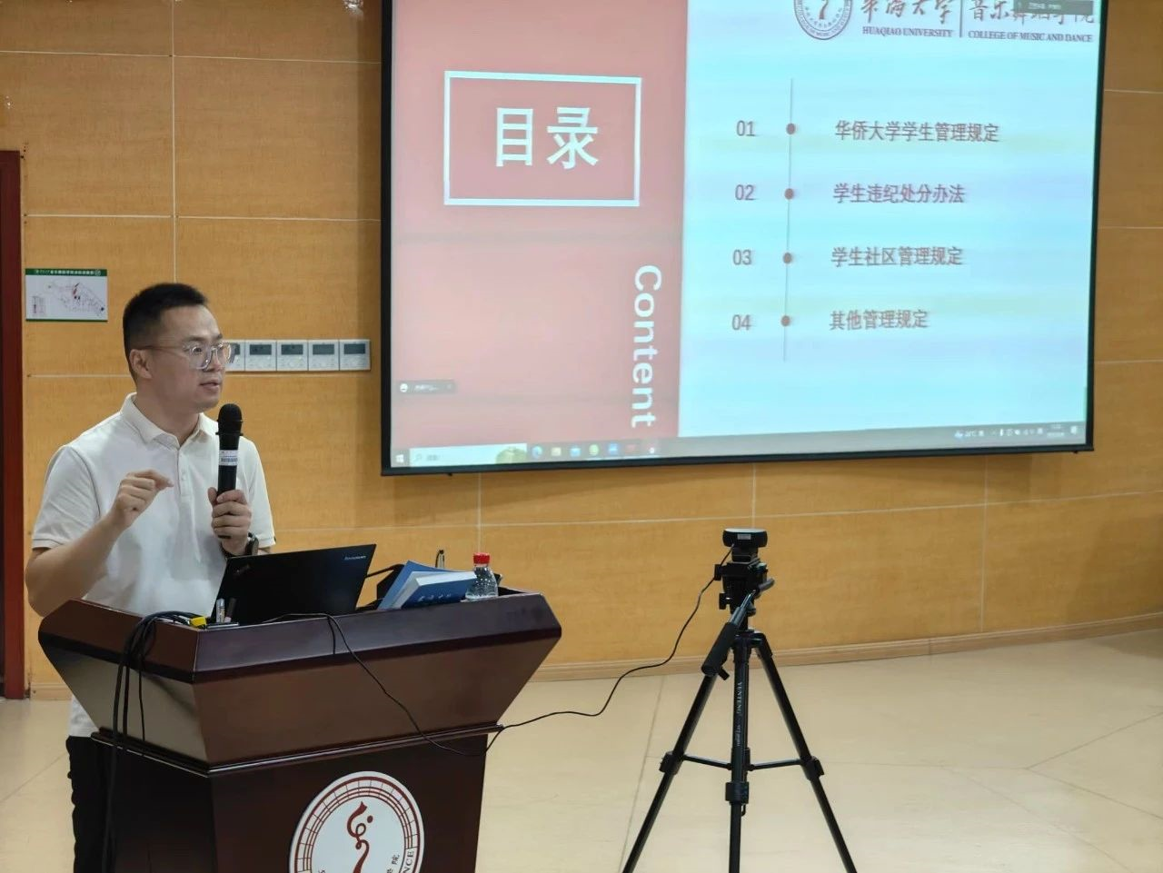 学院辅导员李雅琳老师为新生进行了社区相关管理规定的解读,对社区住宿用电安全、违规电器、社区表现分及其他违规违纪行为进行详细讲解,提醒同学们加强自我约束,营造安全文明和谐的宿舍生活。