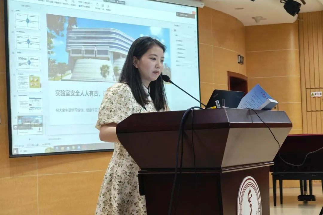 学院实验中心阮静老师为了让新生更快熟悉学院环境,了解学院的硬件设施及其使用方法, 重点讲述了学院实验室位置和消防疏散图,介绍了实验室功能和规章制度,重点强调了用电安全和消防安全,希望大家共建一个安全卫生优雅的学习环境。