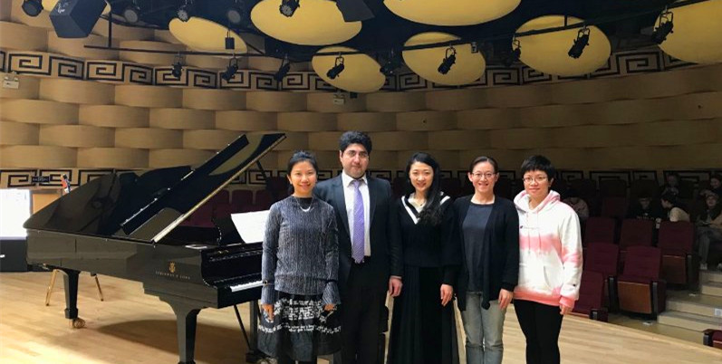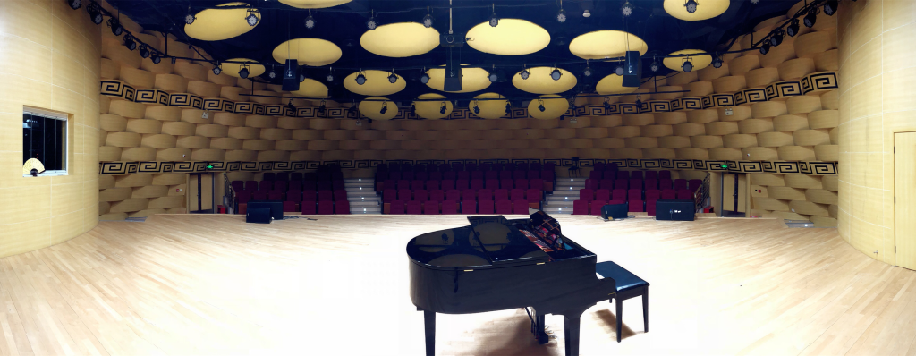 音乐厅舞台上常置小三角钢琴2台,侧面恒温室内置学院贵重仪器设备九尺施坦威钢琴1台。