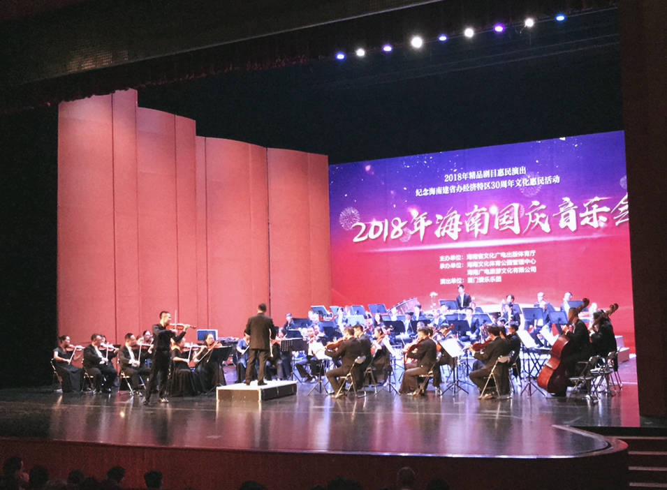 9月28至29日,yl88858永利集团青年教师、旅美小提琴家李冠彤携手厦门爱乐乐团参加了在海南省歌舞剧院举行的“2018年海南国庆音乐会”演出,获得圆满成功。