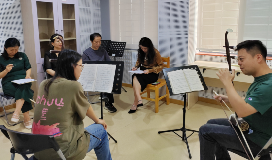 《管弦(二)》二胡课程则是采用一对一的小课教学模式。授课教师以《葡萄熟了》乐曲为载体,讲解乐感在音乐表达中的重要性,以及在器乐演奏过程中如何将乐感中的律动感、类动感、语气感、画面感合理运用于音乐表现中。该堂课程的教学特色是在提高学生二胡演奏能力的基础之上,使音乐教学具有丰富的情感体验,促进学生审美情趣水平的提升,使之具备感受和表现音乐的能力。