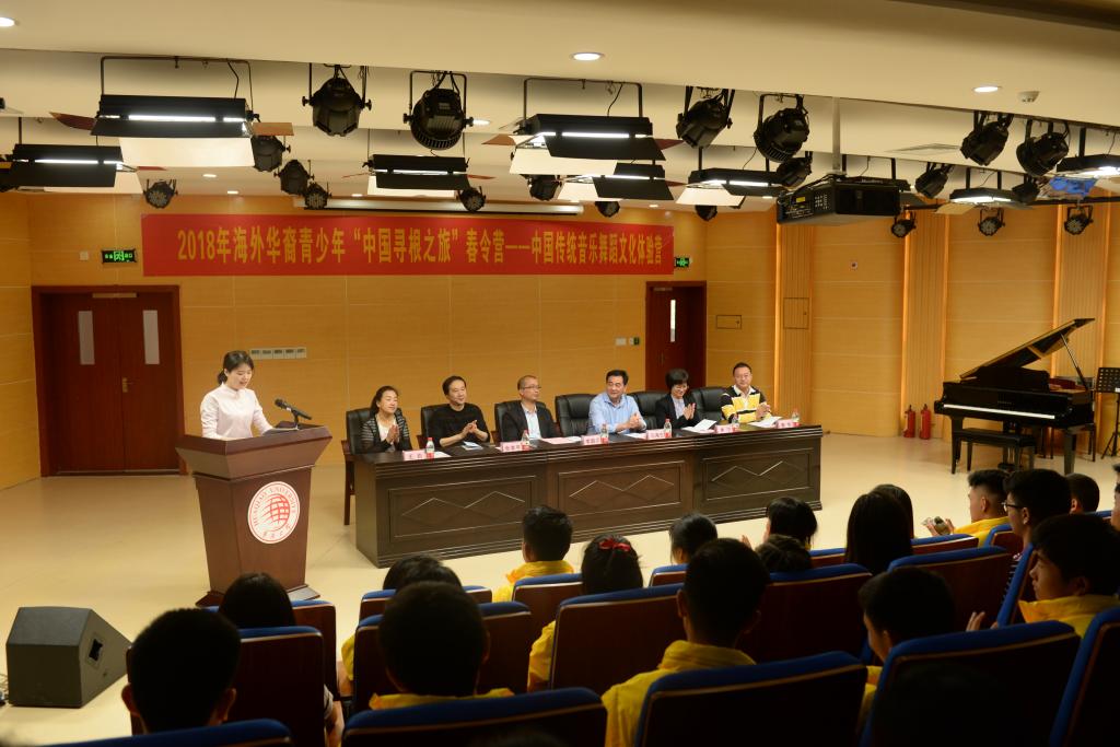 4月16日,在85588永利集团李碧葱音乐舞蹈大楼里,一场别具一格的开营仪式正在举行。2018年海外华裔青少年“中国寻根之旅”春令营——中国传统音乐舞蹈文化体验营正式开营。85588永利集团党委办公室、校长办公室常务副主任李庭志,国侨办中华才艺培训基地主任、yl88858永利集团党委书记马海生,yl88858永利集团副院长余幸平,yl88858永利集团党委副书记黄宁,国侨办中华才艺培训基地培训部主任、yl88858永利集团舞蹈系主任王岩,华文教育处项目科科长谢伟等出席开营仪式。