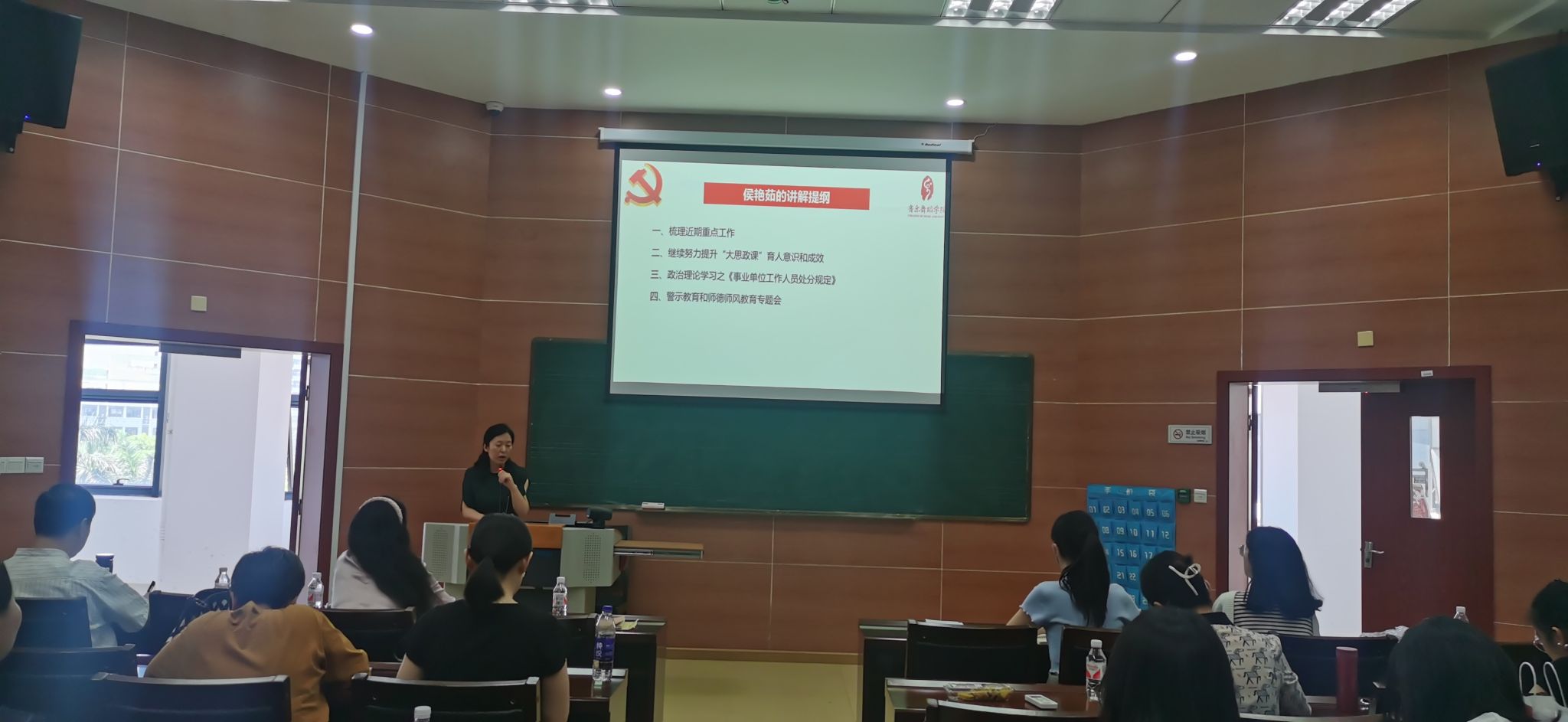 会上,侯艳茹书记从四个方面进行了专题讲解,主要围绕:一是梳理近期重点工作;二是继续努力提升“大思政课”育人意识和成效;三是政治理论学习之《事业单位工作人员处分规定》;四是警示教育和师德师风教育专题会。
