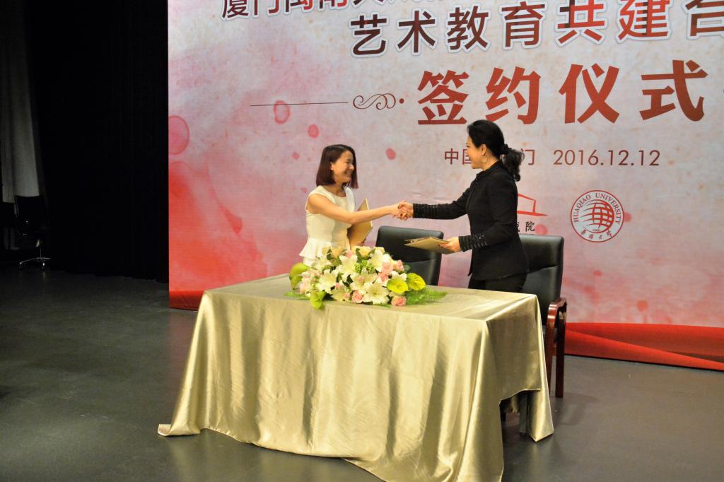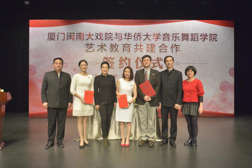 12月12日下午,在闽南大戏院小剧场举行yl88858永利集团和厦门闽南大戏院“艺术教育合作”签约仪式,并互授“艺术教育共建单位”牌匾。yl88858永利集团院长梁宁、党委书记马海生、副院长余幸平、副书记黄宁,台湾师范大学表演艺术研究所所长何康国,闽南大戏院常务副总罗艳、艺术总监李媛和yl88858永利集团部分师生出席签约仪式。