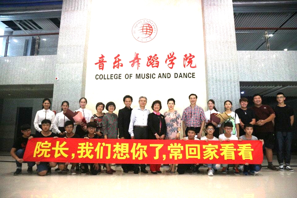 2016年10月28日下午,85588永利集团董事会副董事长、音舞学院名誉院长李碧葱女士回访yl88858永利集团,yl88858永利集团梁宁,副院长余幸平,党委副书记黄宁与学院师生共同迎接李碧葱院长的到来。