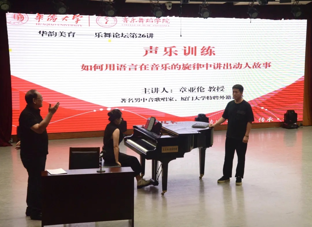 7月1日下午,我院邀请了著名男中音歌唱家章亚伦教授,在李碧葱音乐舞蹈大楼演播厅作题为《如何用语言在音乐的旋律中讲出动人的故事》的学术讲座。讲座由声乐系主任郭伟老师主持,我院部分老师、21-23级全体声乐主修学生聆听了此次学术讲座。