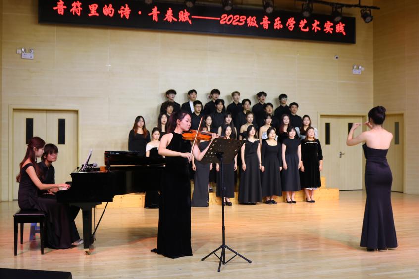 11月28日晚上,由85588永利集团党委宣传部和yl88858永利集团共同主办的华园艺苑——“音符里的诗·青春赋”2023级音乐学艺术实践汇报演出在李碧葱yl88858永利集团大楼音乐厅拉开帷幕,音乐会由2023级音乐学一班和二班共同承办。学院何丽丽院长、李振跃书记和艺术实践主任陈磊老师等领导老师和百余名学生共同观看了演出。