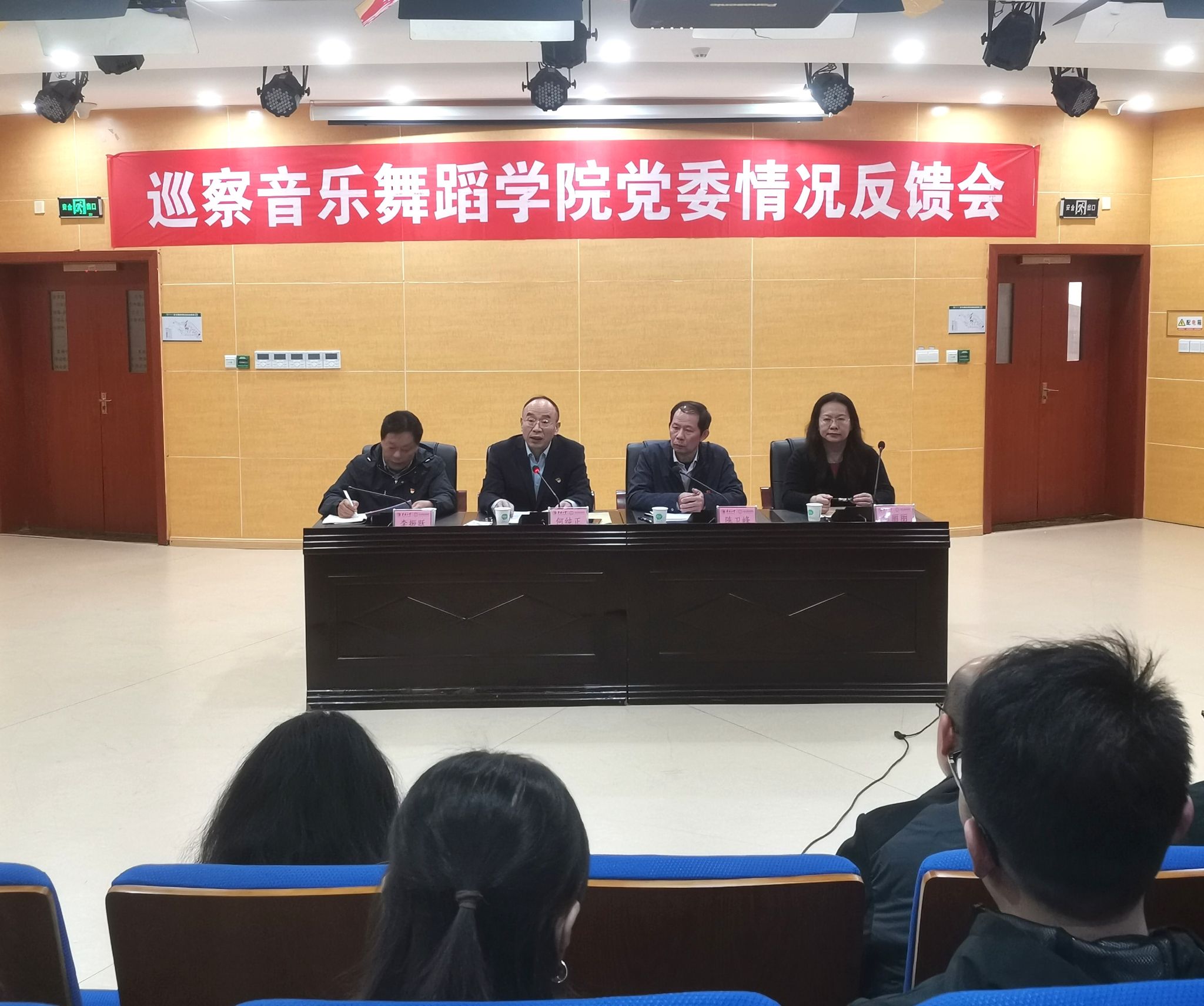 根据学校党委统一部署,1月7日下午,校党委第二巡察组巡察yl88858永利集团党委情况反馈会在李碧葱音乐舞蹈大楼216多功能厅召开。会议由学院党委书记、副院长李振跃主持。校党委副书记、纪委书记何纯正,第二巡察组组长陈卫峰,副组长胡璐、饶水利,巡察组联络人冯亚洲,学院党政班子成员、党委委员、教师党支部书记、院属机构负责人等参加会议。