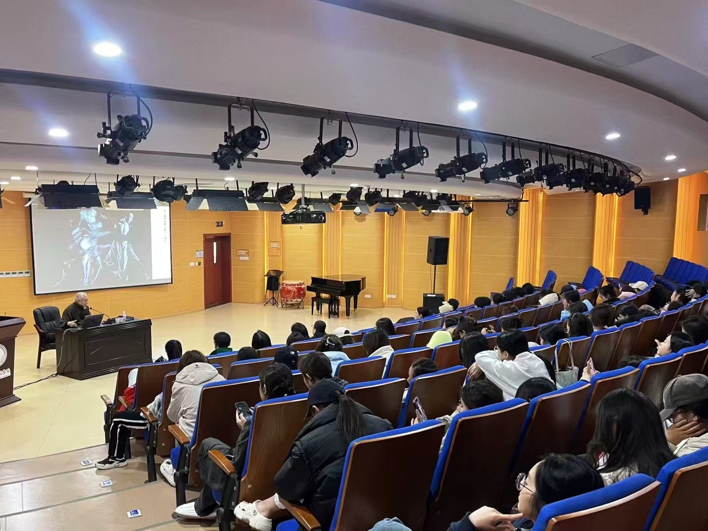 当天上午,张晓雄老师在李碧葱音乐舞蹈大楼216多功能厅做了题为《去符号化的东方动能与动律》的讲座,讲述了关于古典、现代与当代的基本概念,关于保存与发展的相互关系,以及符号下的意义与功能等问题,进一步介绍了现代舞先驱的东方情怀、东方当代的传统基因以及当代东方教学系统的建立。
