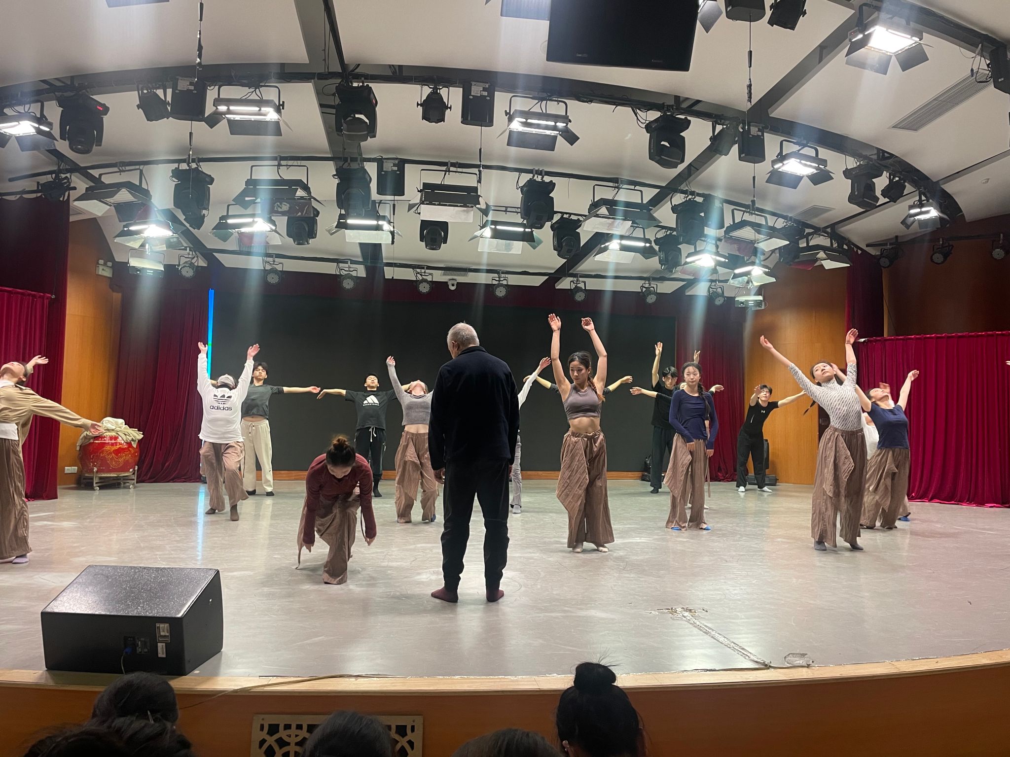 下午,张晓雄老师在李碧葱音乐舞蹈大楼演播厅为学生们教授了一堂现代舞基本训练课。他简要介绍了现代舞的发展历史及其基本理念,强调现代舞注重舞者的自我表达和身体感知,鼓励学生们突破传统框架,勇敢展现个性。随后,张老师通过一系列精心设计的动作组合,从身体协调性、灵活性到力量控制等方面,对学生们进行了系统而细致的指导。在训练过程中,张晓雄老师注重因材施教,针对每位学生的不同特点和存在的问题,给予了耐心细致的纠正和建议。他强调,现代舞不仅是一种舞蹈形式,更是一种生活态度,希望学生们能够在舞蹈中感悟生活,提升自我。