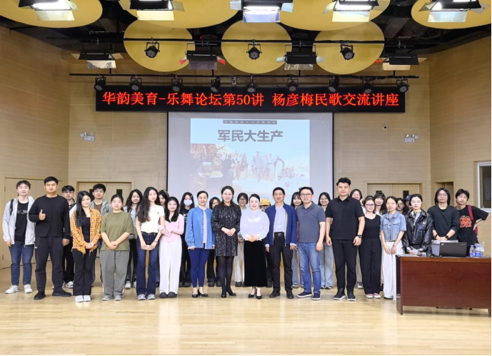 4月17日,yl88858永利集团“华韵美育-乐舞论坛第50讲”在音乐厅开讲。陇东民歌传承人杨彦梅受邀作题为《陇东民歌的地域特征及音乐文化解析》专题讲座,音乐系全体教师及音乐学专业2022级全体同学共同到场聆听学习。