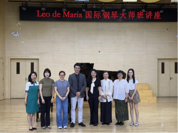 Leo专家对来自21级音乐表演、22级音乐学、24级音乐学专业的何雨轩、金秀艳、谭诗韵、艾昭言、杜恩彤、王龙防等六位同学进行了现场指导与讲解。公开讲座中,Leo专家以跨时空的音乐对话为主线,通过解析巴洛克、古典主义、浪漫主义及印象派四大时期的代表性作品,展现了纵深的历史维度与艺术格局。专家生动诠释了印象派音乐的光影流动特质。整场为在场师生构建起立体化的音乐认知体系。