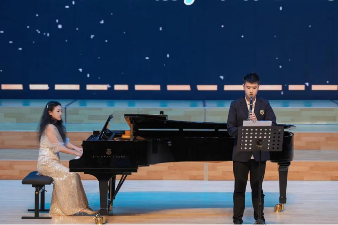 音乐会由我院副院长杨曦婷博士担任总导演。她不仅在艺术上倾注心力,更在整场节目的策划与排演中注入了包容与共融的理念,最动人的时刻莫过于她与孤独症青年王笑忻的单簧管合奏《纪念册》,钢琴与单簧管的深情对话,生动诠释了“热爱可抵岁月漫长”的深刻内涵,也体现了她用实际行动诠释了艺术与公益的深度融合。