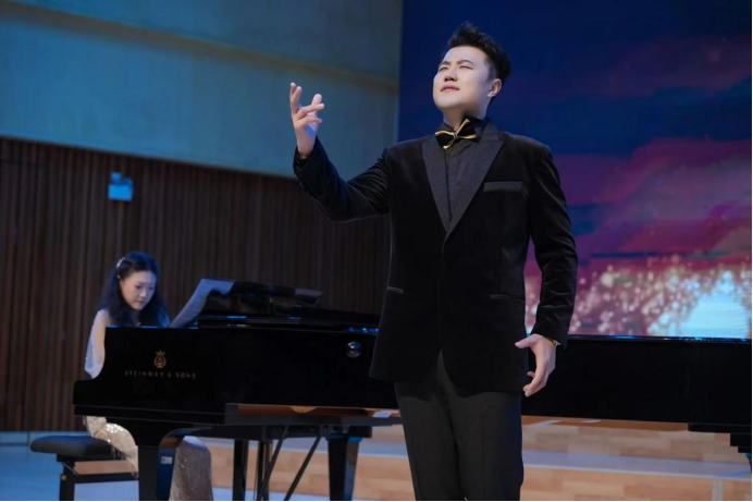 此外,我院声乐专职教师、低男中音雷泽宇博士也登台献唱,与杨曦婷副院长联袂的《依恋时间》用深情而富有感染力的歌声打动了在场每一位观众,展现了学院教师扎实的专业素养与人文关怀。