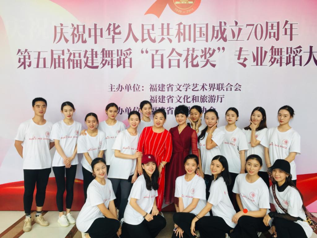 在题材好、立意高的同时,古典舞《笋江月影》的音乐、灯光、舞美、服装与舞蹈情节、氛围相得益彰,呈现出“舟行碧波上,人在画中游”的舞台感。特别是用九把团扇制造了中秋夜从九孔桥洞中看到九个月亮同时冉冉升起的画面,再一次让观众领略到泉州十八景之一的“笋江月影”之奇妙景观。认真负责的主创团队舞蹈系王岩主任、黄玫瑰老师,加上舞蹈演员们精湛的演技,使舞蹈具有较高的艺术水准与文化传承意义,深深打动现场所有观众。比赛现场,不管是在观众席,还是在后台候场,一遇见我们的舞蹈演员,总有人发出“哇,好美”这样的惊叹声!现场评委国家一级编导应志琪给予这个节目高度肯定:“非常精致、非常美,非常沉得住气!我提倡这样的传承方式。”因节目表现出众,9月15日受邀赴福州参加由福建省文联、福建省文化和旅游厅主办,福建省舞蹈家协会承办的庆祝中华人民共和国70周年福建省优秀舞蹈作品展演。为祖国母亲生日献礼!