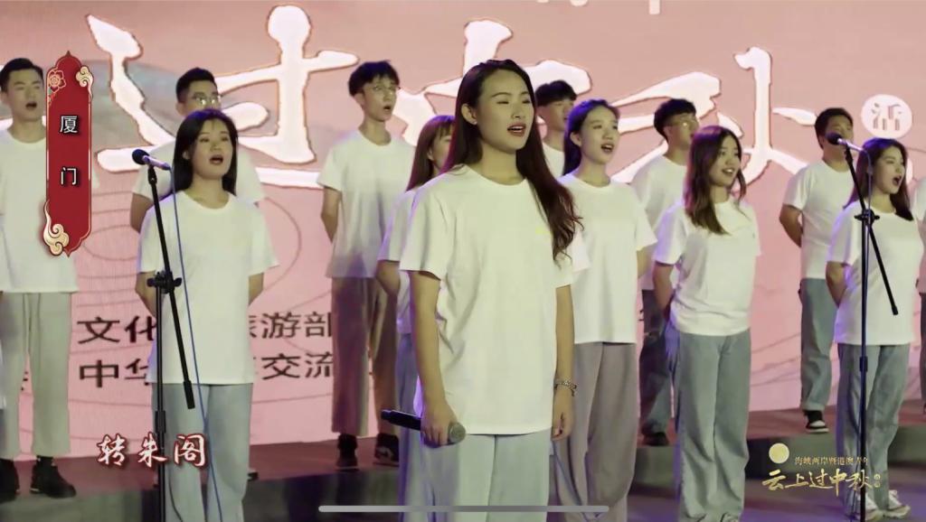 10月1日晚7时,全国青联秘书处、文化和旅游部港澳台办主办的海峡两岸暨港澳青年“云上过中秋”主题直播活动在微博、微信、学习强国、b站等直播平台举行,我院20名学生在学校团委的指导下参加了福建省分会场的录制,与全国各地、各行各业的青年共同演唱《但愿人长久》,传达青春力量和美好祝福。