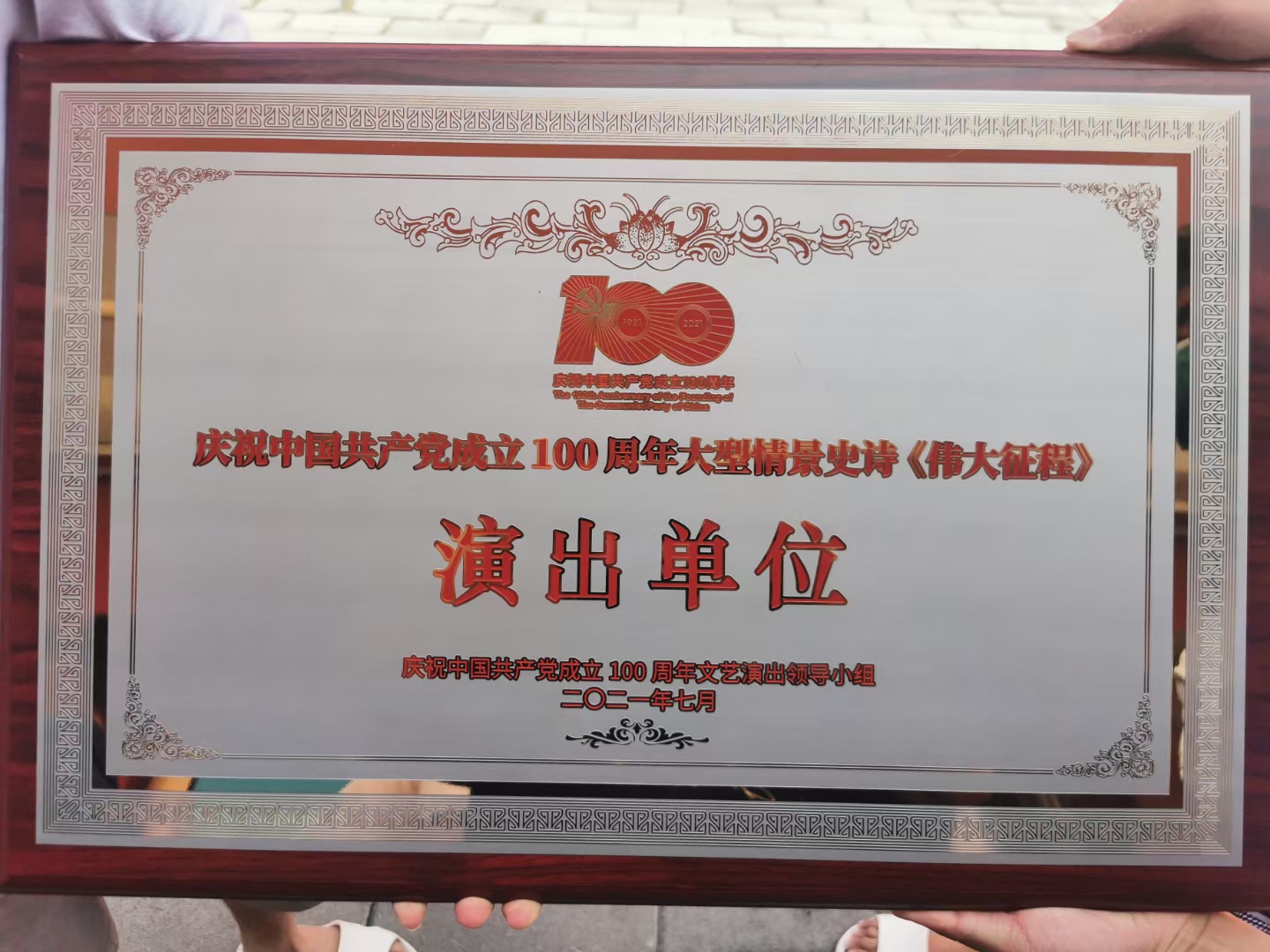 我校获颁“庆祝中国共产党成立100周年大型情景史诗《伟大征程》演出单位”牌匾