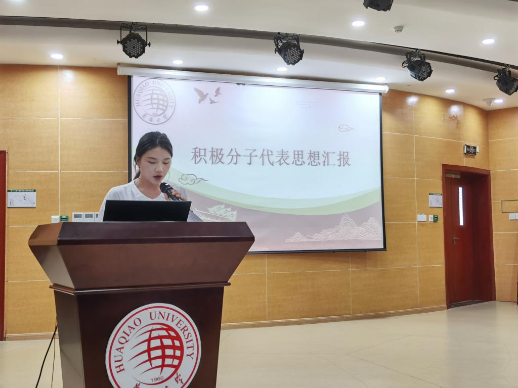 随后各支部入党积极分子代表吴琦淇、周肖雪子、贾子慧、刘妍、廖婧蕊、何婷、王玉庆、王迪等依次做思想汇报。王玉庆表示,上学期参加了各部门(单位)组织的庆祝建党百年系列活动四次,在活动排练中深受鼓舞和启发,更加认识到了中国共产党的初心使命,更加坚定了加入党组织的信心和决心。刘妍从近期参加的学生组织活动谈起,她说通过参加学生社团组织的红色主题体验活动,对充实的大学生活更加期待、对党组织更加向往。