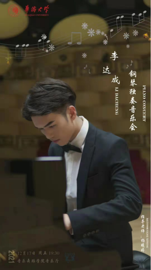 李达成于本科期间积极参加各钢琴大师班,曾师从孔嘉宁、汪奕文等钢琴家。