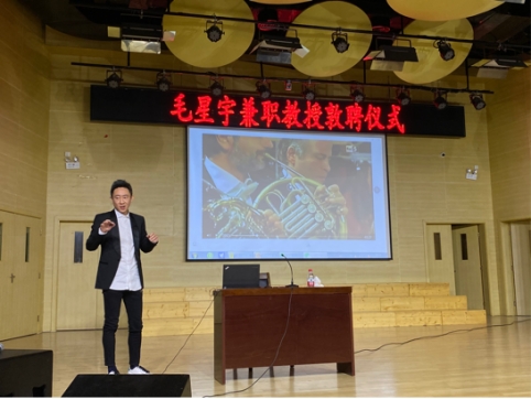 仪式开始,梁宁教授对毛星宇教授做出了详细的介绍,评价很高;梁宁教授讲道毛星宇教授现担任国内外多个歌剧院的首席,这么年轻有为就能够在音乐领域建树颇多,是离不开他从小对音乐的热爱、潜心学习和深入研究,值得我们学习。