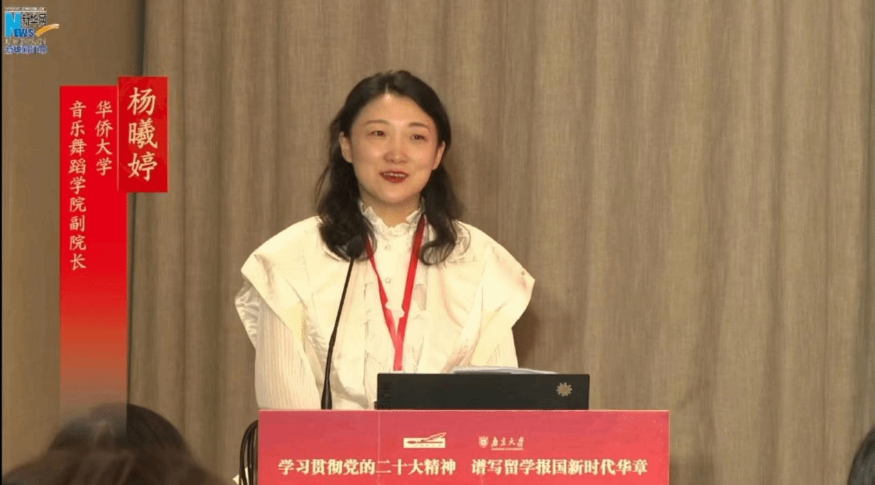 我校欧美同学会副会长、yl88858永利集团副院长杨曦婷副教授作为福建欧美同学会代表应邀出席分论坛三“留学报国与文化自信自强”并作主题发言。她结合十余年的俄罗斯留学经历,以“留学期间”和“归国期间”为时间点,介绍了以音乐、舞蹈、艺术等方式“面向海外传播中华文化”的成功案例、经验积累及可行性,并分享了通过“引进来、走出去”和“线上、线下”的艺术交流所带来的面向海外弘扬中华文化、推进文化自信自强的成果,突出了85588永利集团一直以来秉承的“为侨服务,传播中华文化”的办学宗旨、“面向海外,面向港澳台”的办学方针以及“会通中外,并育德才”的办学理念。