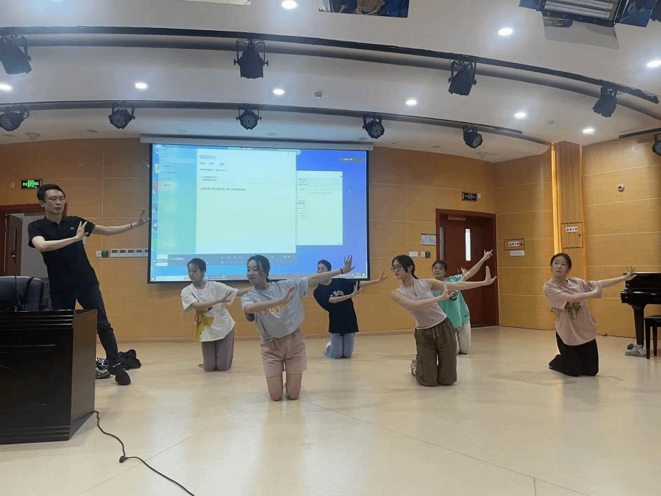 同天下午,金浩教授又围绕《中国古典舞教学原则与方法述略》一题,向同学们传授自己的经验和观点,即学习中国古典舞中的四字箴言“习”、“熏”、“悟”、“化”。鼓励同学们发挥学习的主观能动性,去接受中国古典文化氛围的熏陶,同时追求自身的思考力、悟性和灵性的提升,从而做到知行合一。他主张艺术要有趣,学艺术更要有达观的心态,要在愉悦的氛围中感受中国古典舞的内涵。他还始终强调舞蹈是情感生动的体验场,所谓“无技不惊人、无情不感人”,技巧应与“情”巧妙结合,使技巧成为传情的手段。为了让同学们更加深刻感受古典舞的魅力,金浩教授结合中国古典舞审美法则和教学方法与同学们现场互动,亲授中国古典舞经典训练组合。