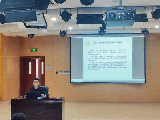 仪式结束后,金浩教授给舞蹈系师生们带来了题为《舞蹈研究视野中的四种职业身份》的讲座。金浩教授用风趣幽默的语言,深入浅出为师生们介绍了舞蹈学科建设的阶段变化。他着重从舞蹈表演、舞蹈教育、舞蹈编导、舞蹈理论四个方面,分类解析不同职业身份下需要具备的素质能力和承担的责任内涵,就舞蹈学专业重点解析了教师的必备修养和本领,提出“学无常师,教无定法”的观点。讲座过程中,他反复强调艺术教育要有“大爱”,一专多能是当代社会对人才的基本需求。