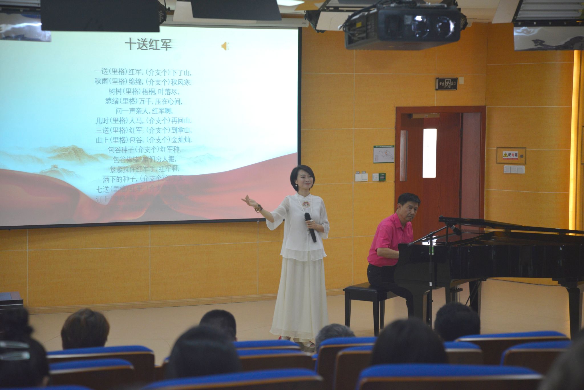 6月6日下午,知名音乐家夏正华、秦伊丹走进我院,在李碧葱音乐舞蹈大楼216多功能厅作题为《红色音乐——党旗飘扬》专题讲座,与我院师生交流音乐艺术创作。本次讲座由我院院长何丽丽教授主持,学院师生代表聆听了此次讲座。